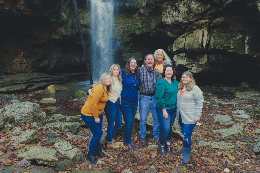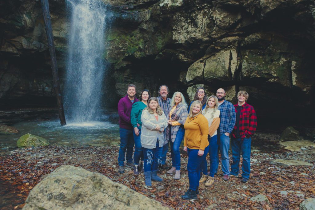 Mike Weeks is about to reach the big six-oh. To celebrate, his family got together to surprise him for a family photoshoot, the day after Thanksgiving, at his favorite location: Lost Creek Falls in Sparta, Tennessee. All his adult children, plus the growing grandchildren, were there to participate. Mike and Natalie, who hired me, travelled all the way from South Carolina to make this shoot happen, and it was a blast. At first, everyone was suffering from the cold and the short climb down the trail to get to the waterfall, but once we got going, everyone started warming up and having a great time. Natalie was thrilled I was able to take over from her notes and handle the group. After I delivered the photos, Natalie texted that I “knocked it out of the ballpark! Great positioning! Sooo pleased!”